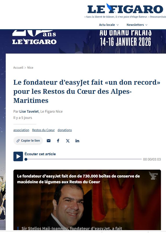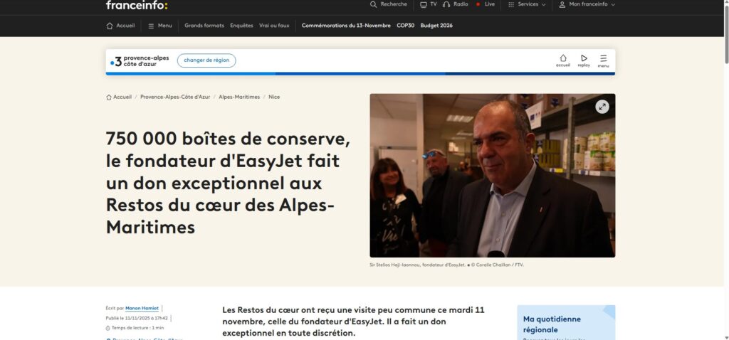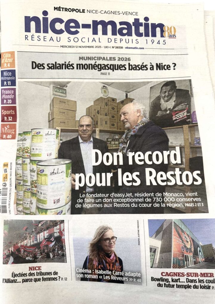 During the visit, Restos du Cœur’s Alpes Maritimes Departmental Manager Francois Chantrait warmly thanked Sir Stelios Haji-Ioannou for his solidarity, generosity, and ongoing encouragement for this project through the years. Francois added: